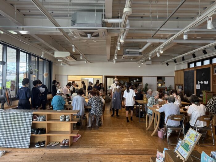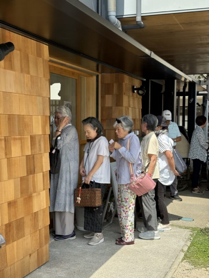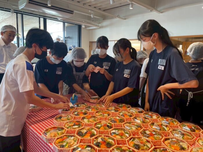 中学生と地域のお母さんたちが敬老の日のお祝いに
