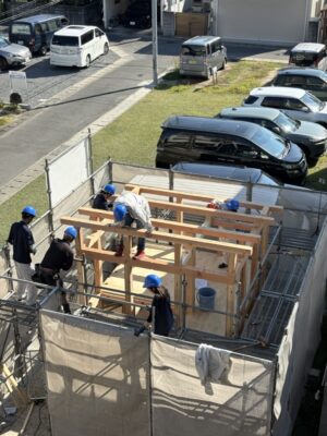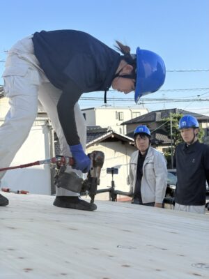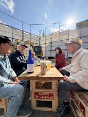 若手たちが大工と共に、手を動かし、小屋を建てる。