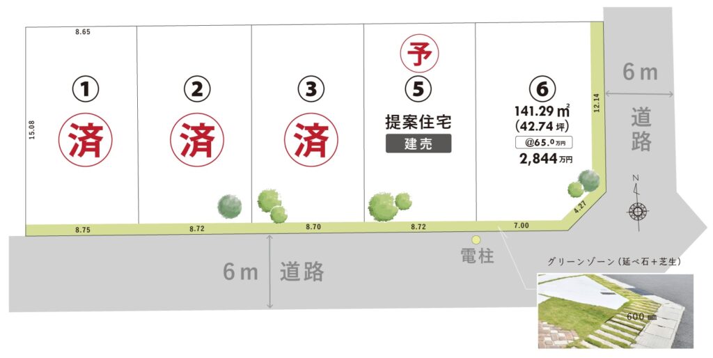 全区画南6m道路♪シンボルツリーや菜園のある緑豊かな分譲地