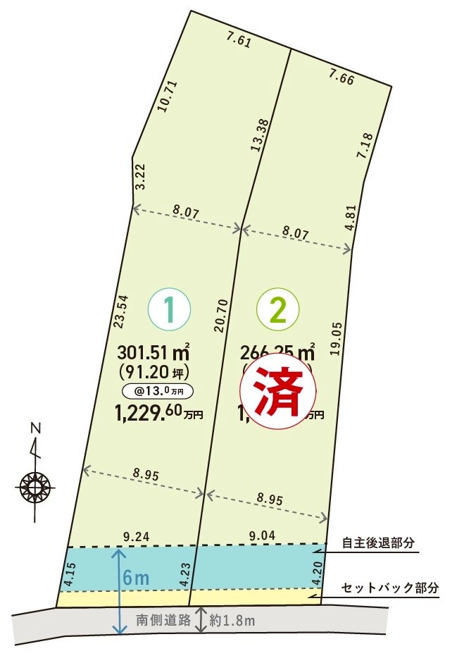 南側1.8m公道(セットバック部分・自主後退部分あり)