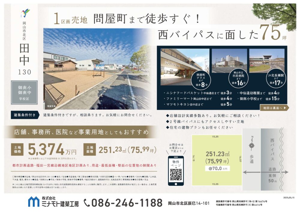 問屋町まで徒歩すぐ!西バイパス沿いの75.99坪の広々敷地。事業用地にもおすすめ。