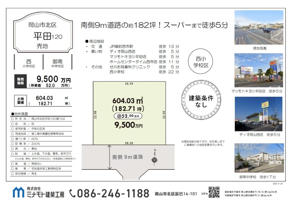 ▼価格見直しました▼約182坪の広々敷地!!南9m道路。店舗やクリニック等にもおすすめの立地です。《建築条件なし》