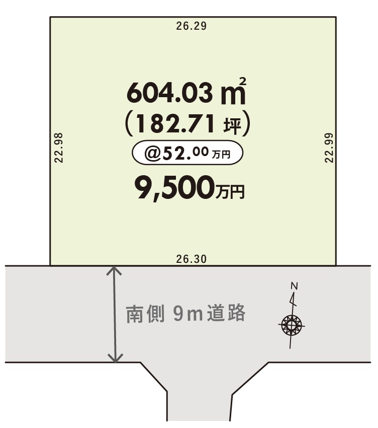| 設備 | 上水道、下水道、電気、都市ガス | 道路 | 南側9m |
