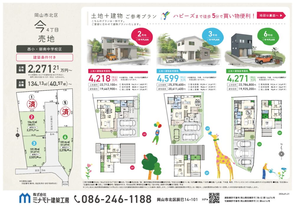 ハピーズまで徒歩5分!西小学校まで徒歩12分の新規分譲地(土地3区画・建売住宅2区画)*間取りプランあり