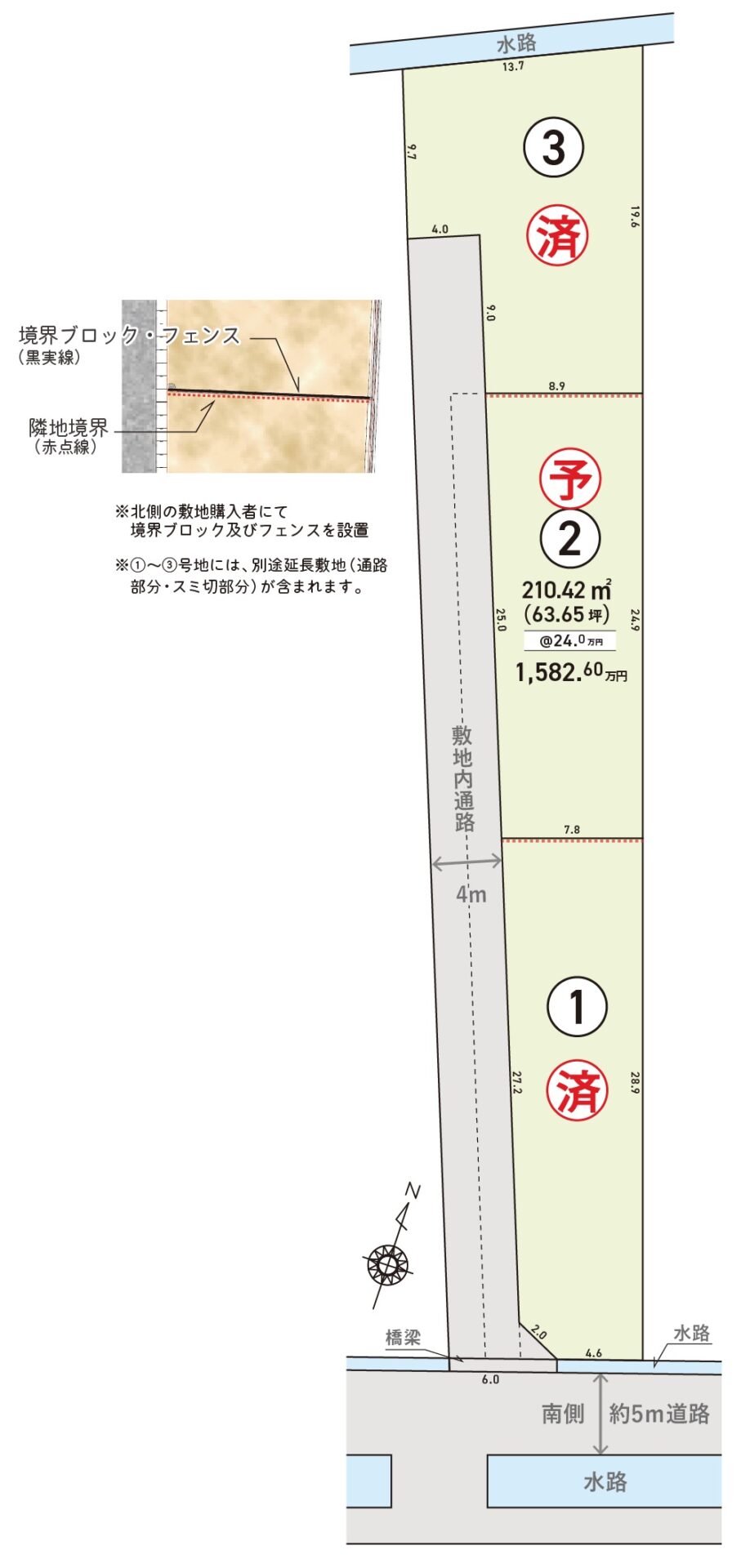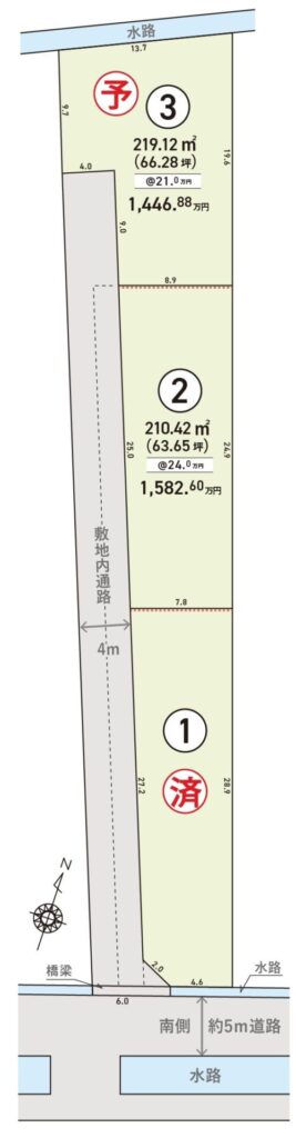 | 設備 | 上水道、下水道、電気、都市ガス | 道路 | 南側約5m |