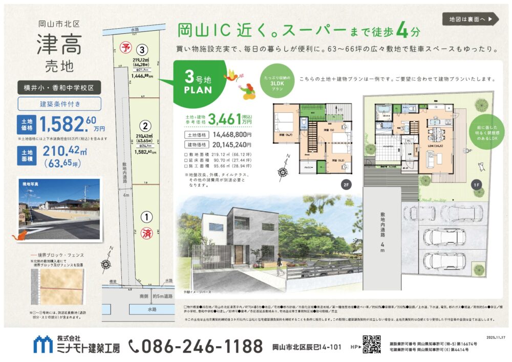 岡山IC近く。スーパー、ドラッグストアまで徒歩4分*間取りプランあり