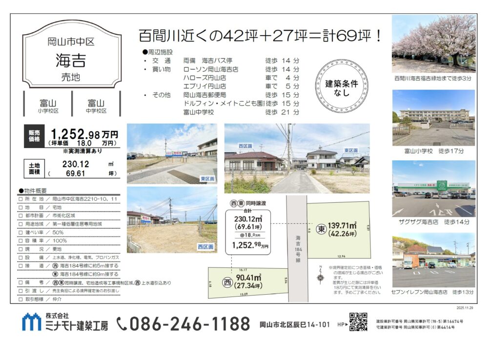 百間川近くの42坪+27坪=計69坪!