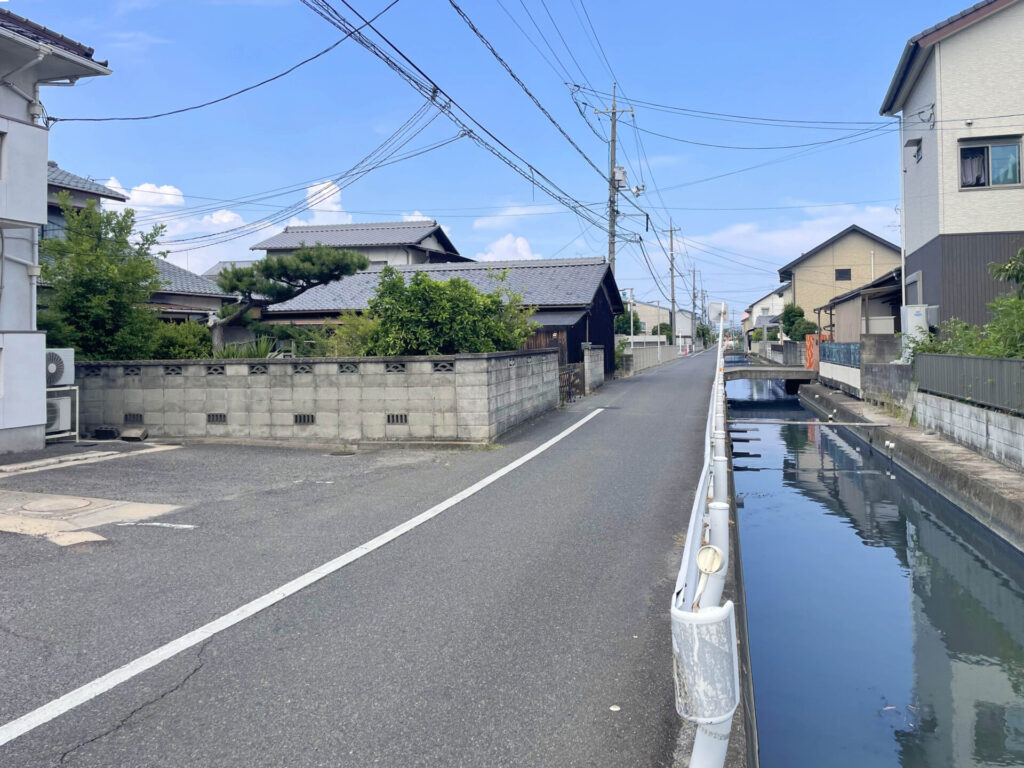 南側3.5~3.6m道路で、その南には水路が通っています。