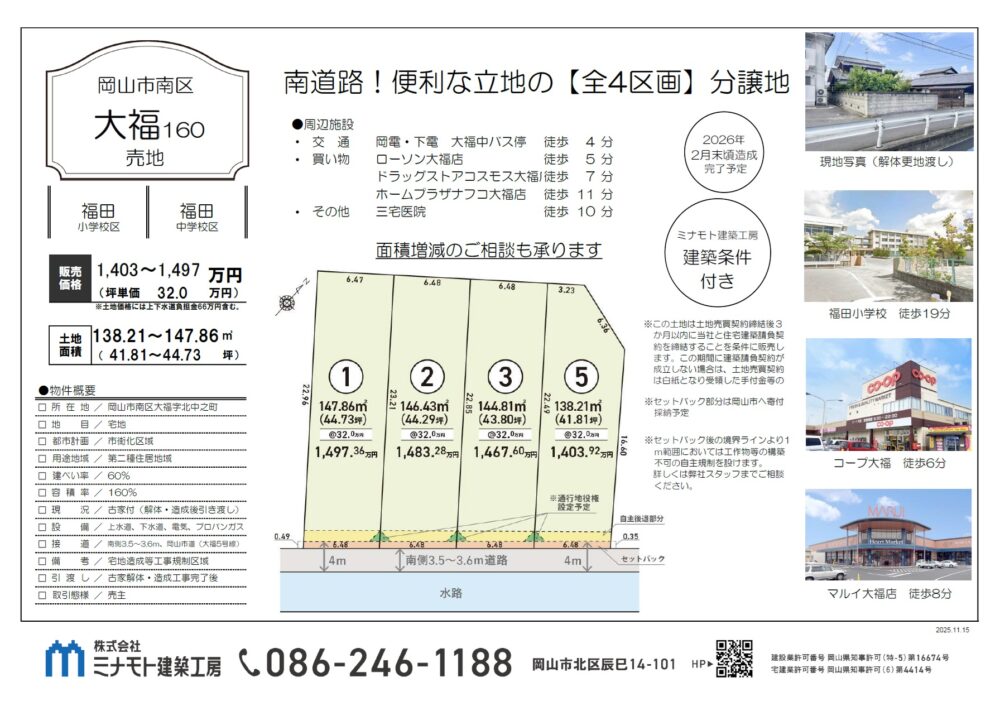 南道路!バイパスにアクセスしやすい全4区画分譲地