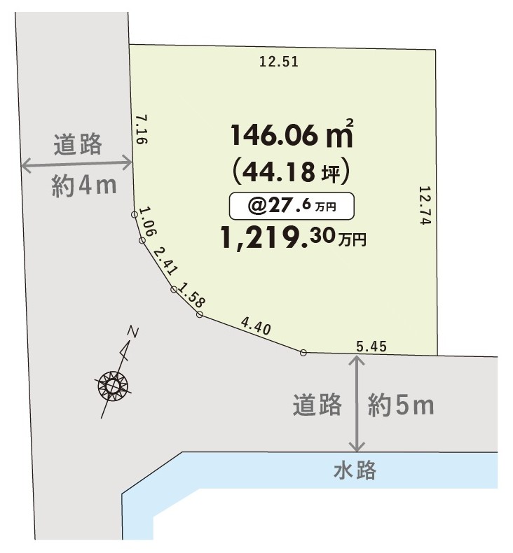 設備 上水道、電気 道路 南側約5m、西側約4m