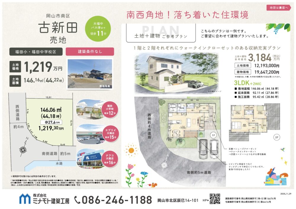 ・個人開発費用55万円(税込)、上水道引込負担金44万円(税込)別途要