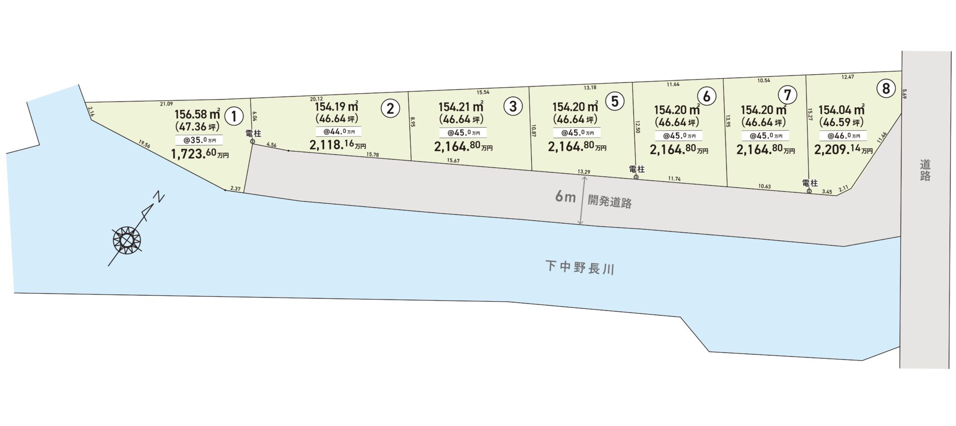 設備 上水道、下水道、電気、都市ガス 道路 各号地幅員6m開発道路