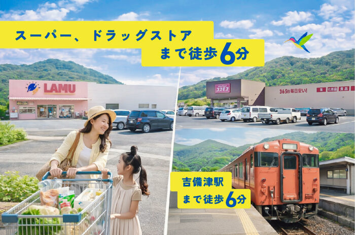 吉備津駅も徒歩6分で、岡山中心部へのアクセスも抜群。家事と育児、仕事の両立を「距離」がサポートします。