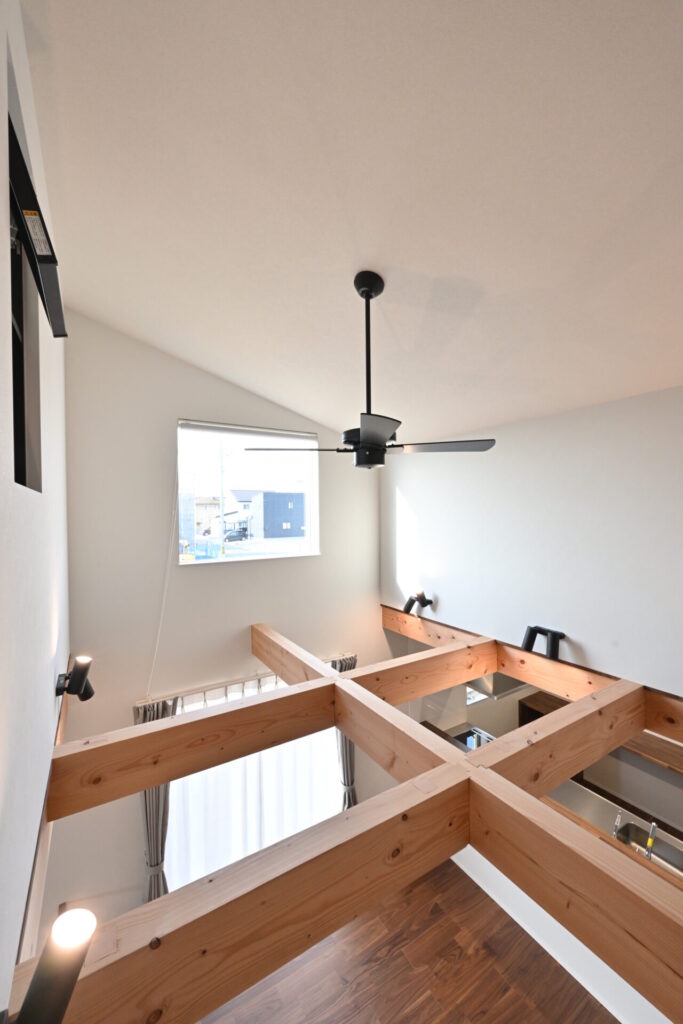 孤立しがちな子供部屋もLDKに面して、内窓をつけることによって家族の絆と吹き抜けの光を同時に取り入れることができるような間取に。