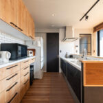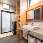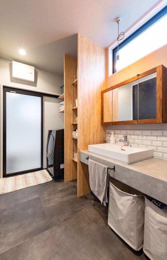 家事のしやすさにも徹底的にこだわりました。キッチンに隣接して洗面・ランドリールームやファミリークローゼットを配置した「回遊動線」です。忙しい朝もスムーズに動ける家事動線の工夫が、暮らしに心地よいリズムとゆとりをもたらします。