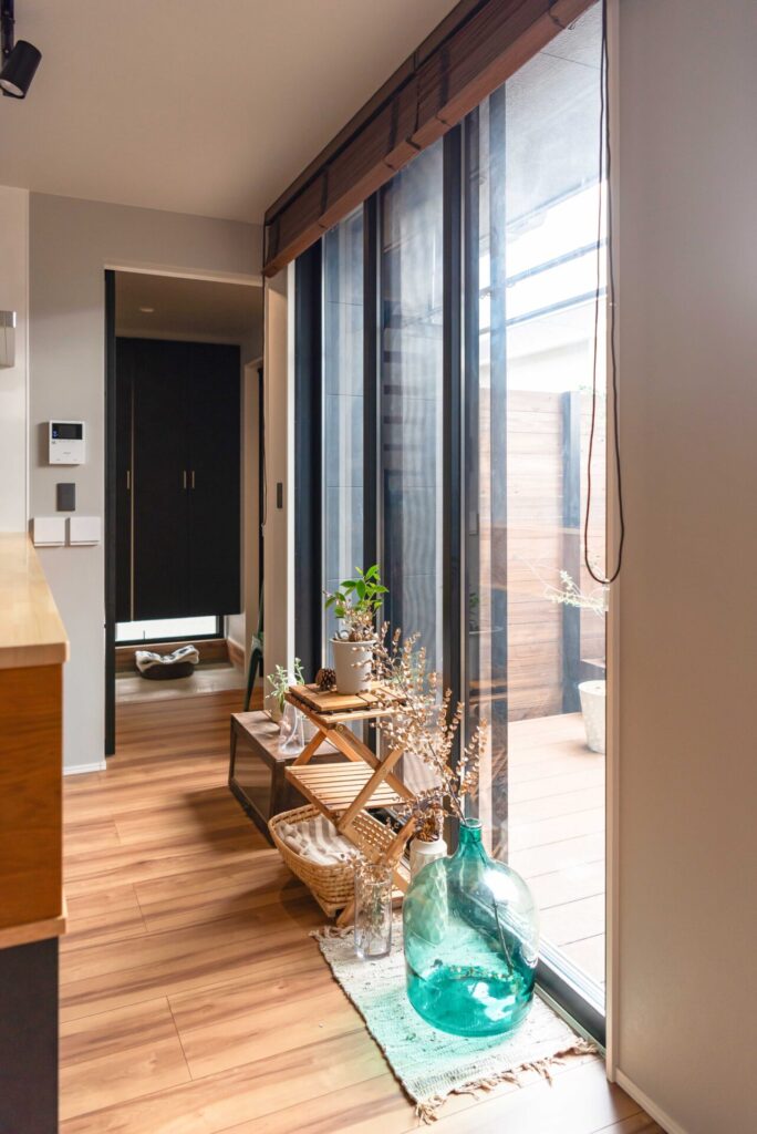 キッチンに立ちこの中庭を眺めるひとときは、奥様のお気に入り。お料理をしながら四季の移ろいを感じたり、お子様が中庭で遊ぶ様子を見守ったりと、日常に豊かな彩りが生まれます。