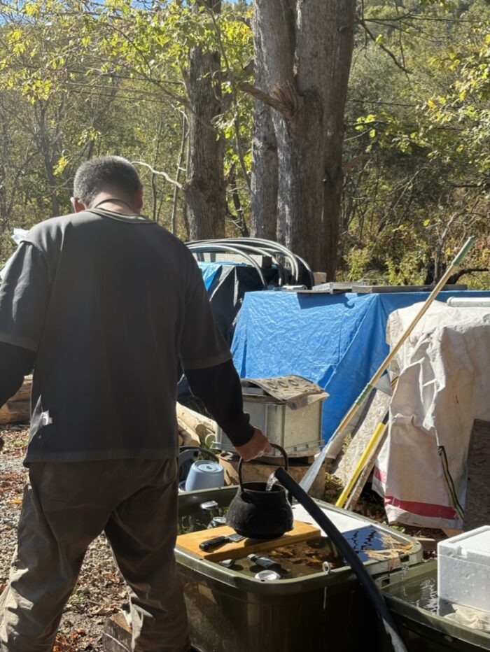 フリーの1日は会長と有馬と3人で土谷さんの作る小さな村へ。