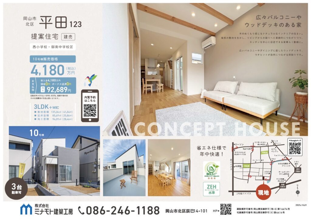 | 備考 | ※宅地造成等工事規制区域 【高い断熱性能で一年中快適に!】 ◆BELS☆3 ◆ZEH水準 【暮らしをサポートする充実仕様】 ◇高効率給湯器 ◇食器洗い乾燥機 ◇IHクッキングヒーター ◇浴室換気乾燥機 ◇全居室LED照明・カーテン付 ◇エアコン1台付 【最低限のデザインコードを設けることで、心地良いまちへ】 こちらのお家が建っている分譲地《平田128》には、まち全体に少しの取り決め(デザインコード) をつくりました。 例えば、「シンボルツリーや果樹を植えること」、「グリーンゾーンを設けること」などです。最低限のデザイン コードをみなさんに受け入れてもらうことで、個性を活かしながらも、心安らぐ緑を感じられる住宅団地にし たいと考えました。(詳しいデザインコードはお問合せください。) ▶もっと詳しく【まちづくりプロジェクト】 ◎新しい分譲地(平田123)内に建っています。 |