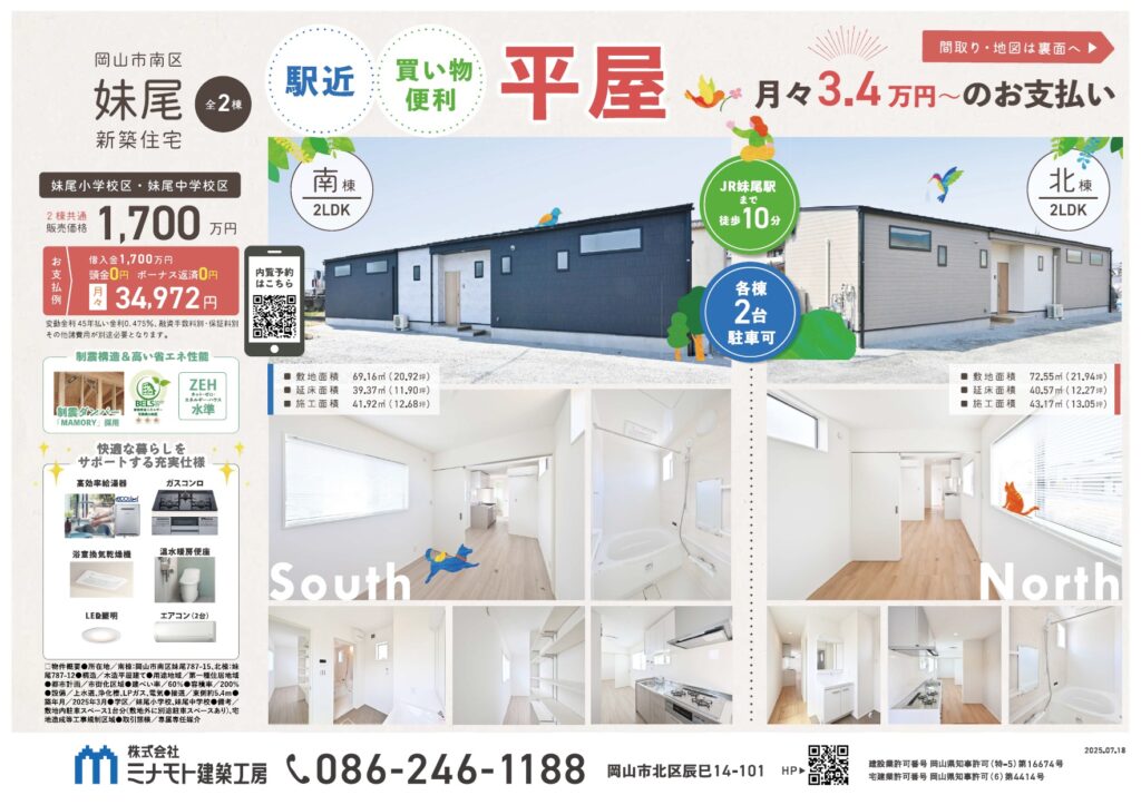 備考 | 【下記から内覧予約できます】 https://www.ie-miru.jp/cms/yoyaku/minamoto/events/82547 【安心・快適な構造】 ◆制震ダンパー「MAMORY」を採用 ◆BELS☆3 ◆ZEH水準 【暮らしをサポートする充実仕様】 ◇高効率給湯器 ◇浴室換気乾燥機 ◇全居室LED 照明付 ◇エアコン2台付 ※月々のお支払い3.4万円~(詳しくは下記PDFチラシをご覧ください) |