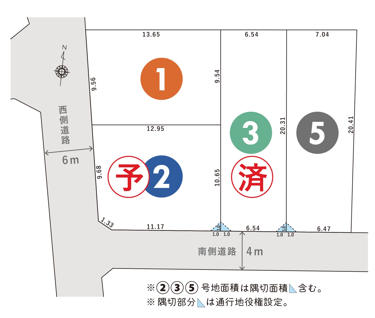 | 設備 | 上水道、下水道、電気、都市ガス | 道路 | 西側6m、南側4m |
