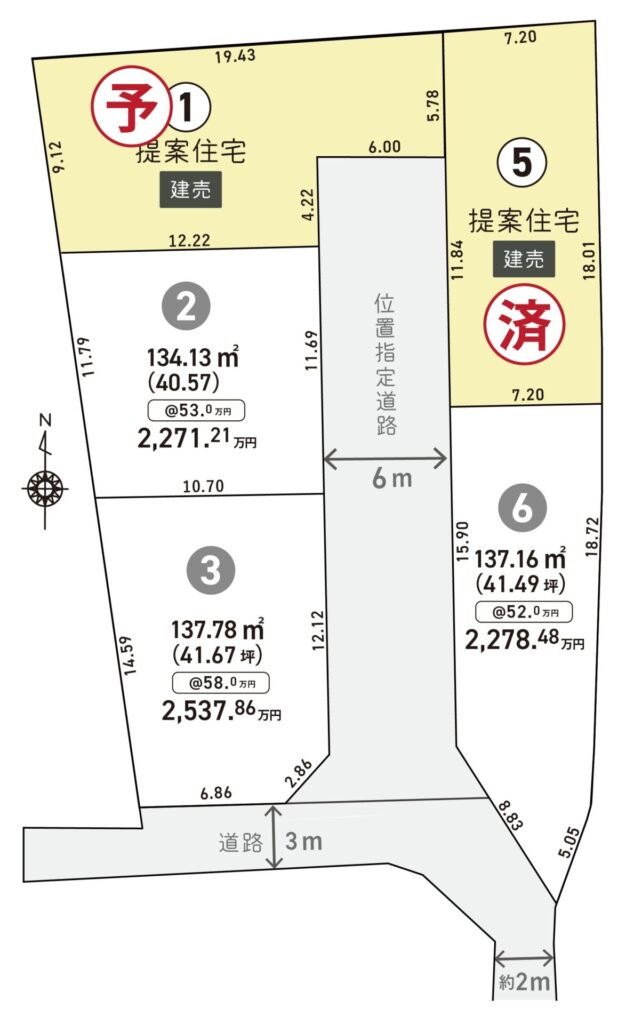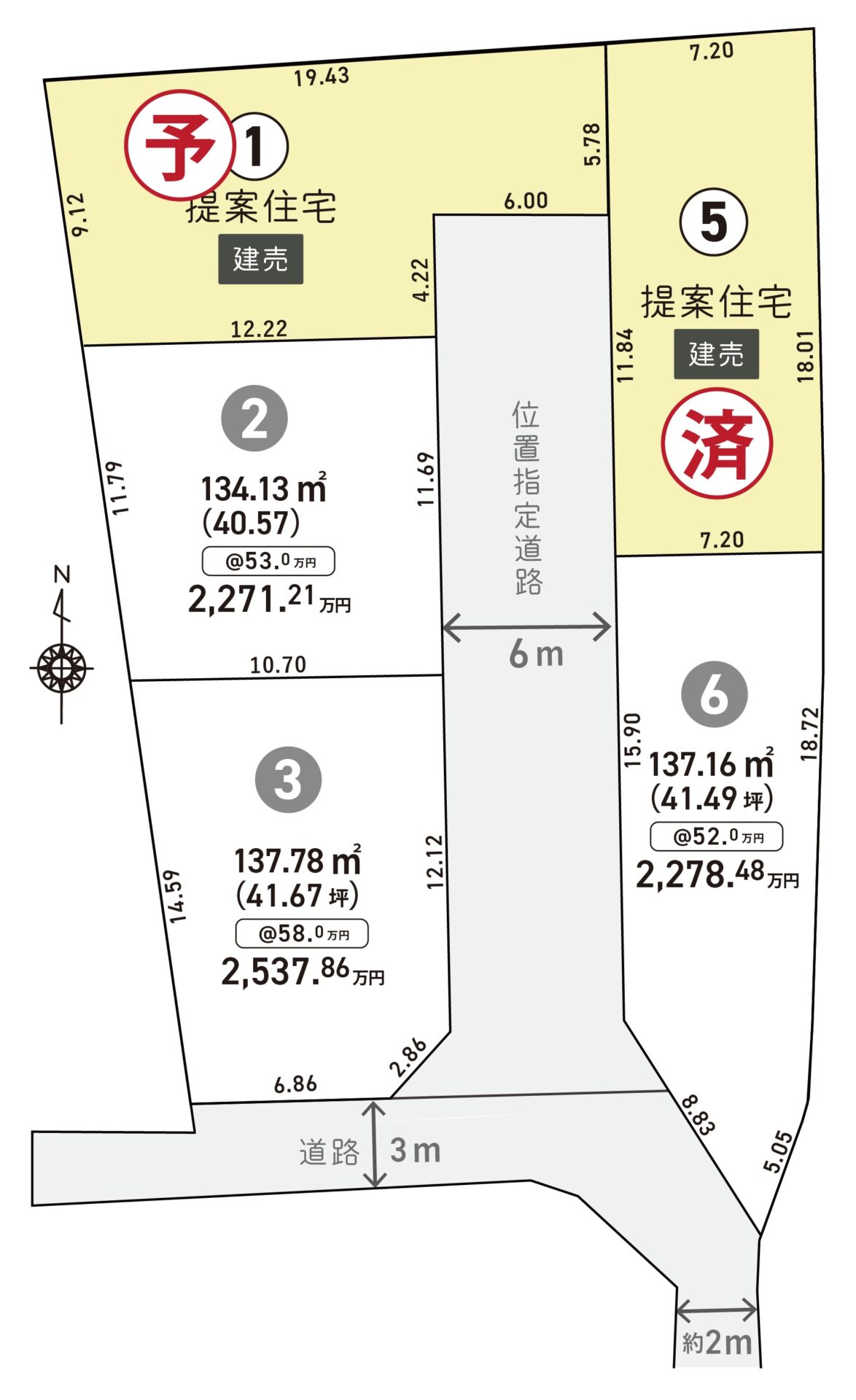 | 設備 | 上水道、下水道、電気、プロパンガス | 道路 | 6m(位置指定道路) |