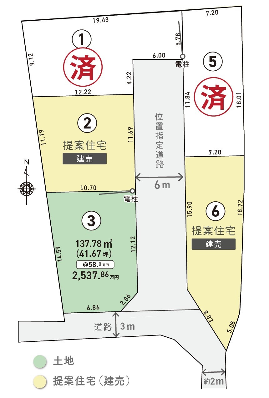 | 備考 | ※宅地造成等工事規制区域 ※位置指定道路(指定番号 第8号、指定年月日 令和7年8月6日) 同分譲地内③号地は土地からの販売です。お気軽にお問い合わせください。 |