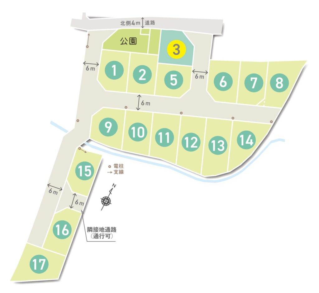 | 設備 | 上水道、浄化槽、電気、プロパンガス | 道路 | 北側4m、東側6m(開発道路) |