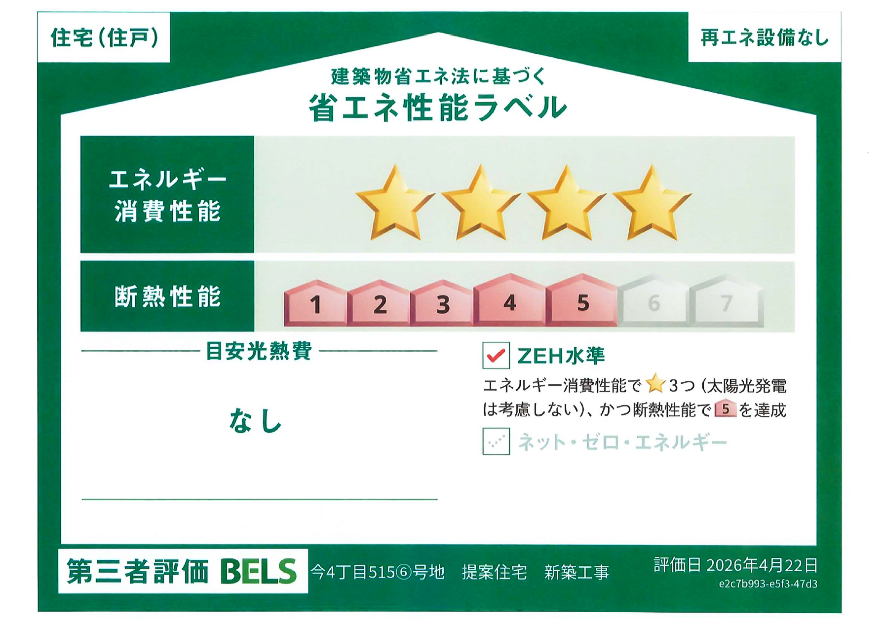 BELS★4、断熱性能5、ZEH水準の高性能な住まい
