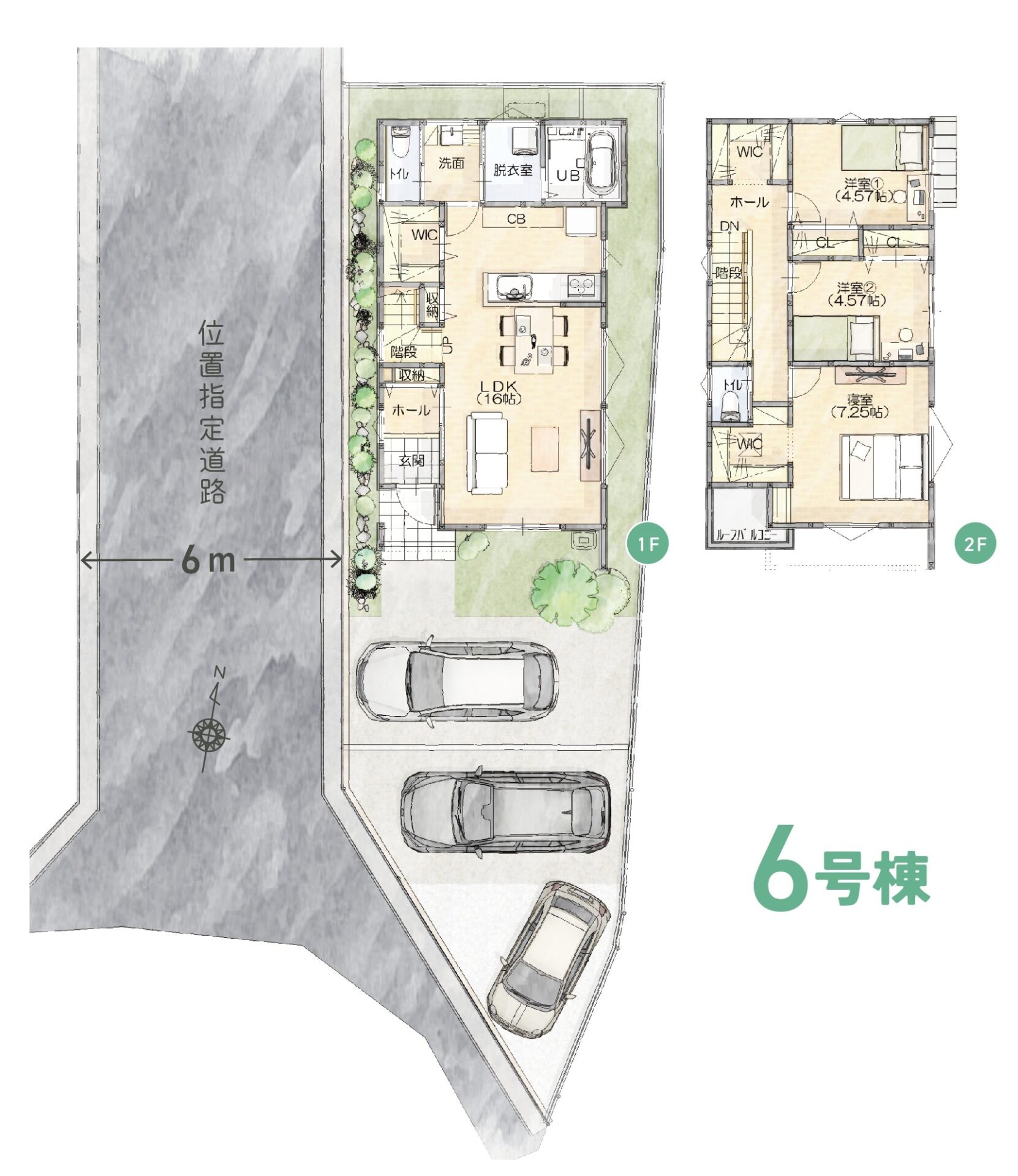 【分譲地全体区画図】②⑥号地に提案住宅建築中!③号地は土地からの販売です。